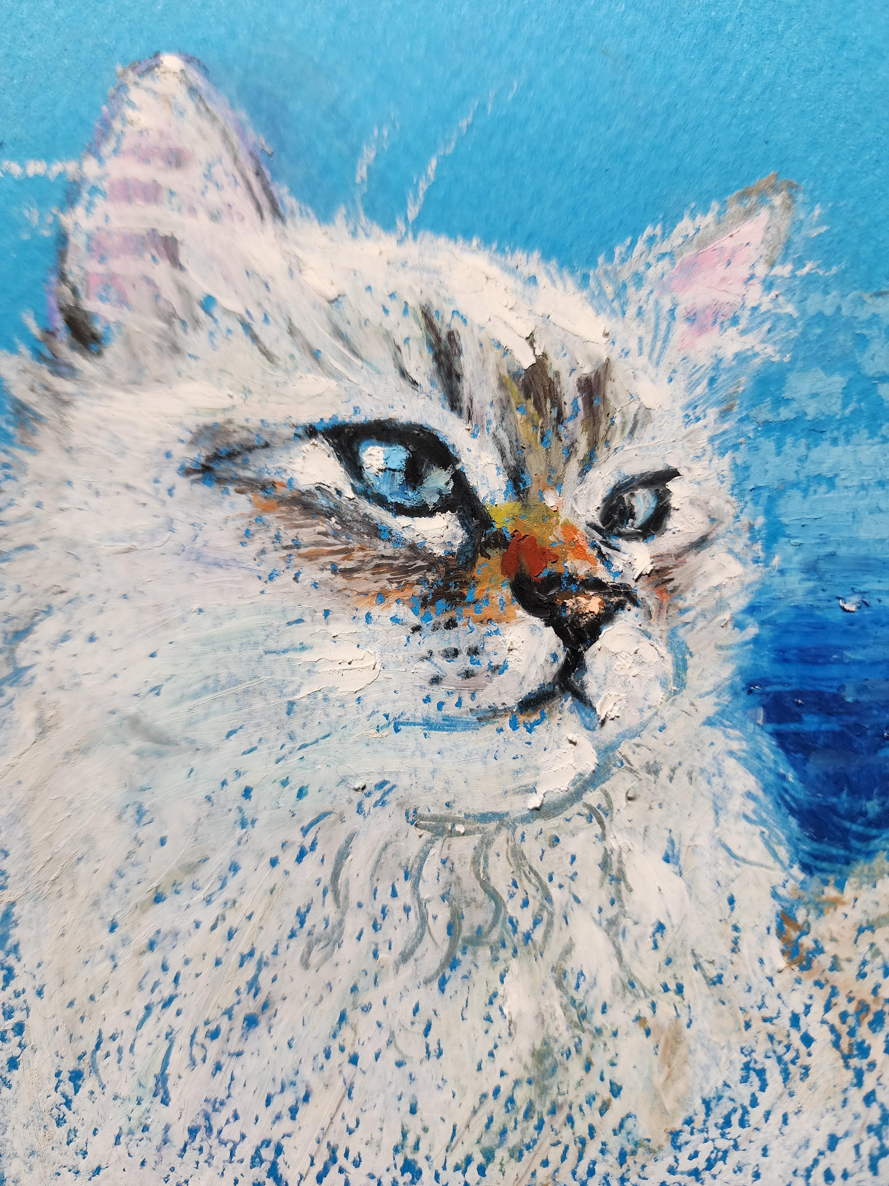 3. 채색ᆢ 흰색 냥이라고 흰색으로만 그릴 순 없겠죠? 저 같은 경우에는 그림자 쪽은 파랑이나 카키 등으로 밑 색칠하고 흰색으로 덧 칠해요..