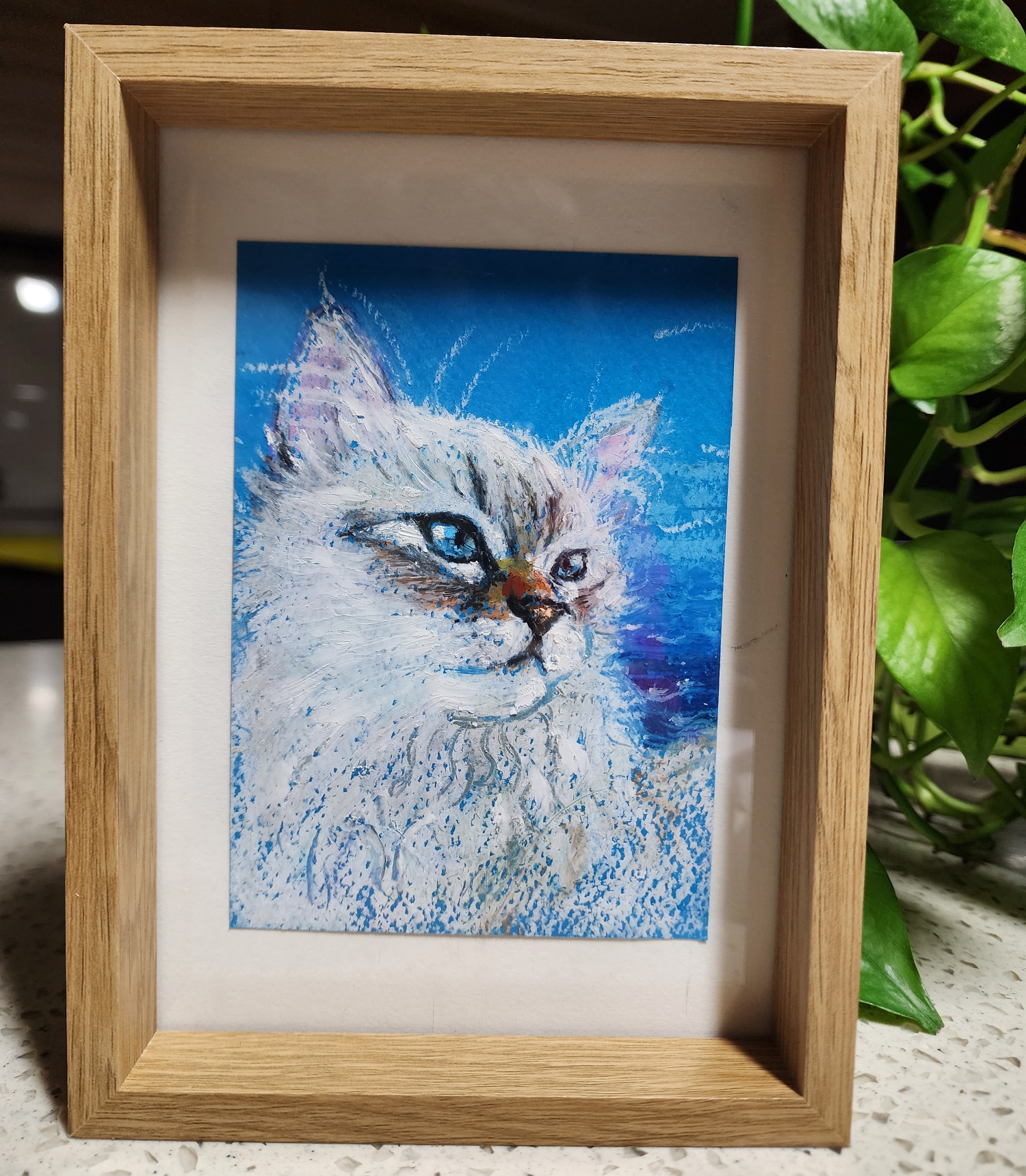 7. 마지막으로 가장 신경 써야 하는 것이 액자입니다.. 일단 그림과 어울려야 하고요ᆢ 그림이 작을 경우에는 위 사진처럼 매트를 깔아도 됩니다ᆢ 그림은 좋은데 액자 값 아끼려고 그림 망치면 안되죠 ㅠㅠ 크레파스는 색이 밀려서 크레파스 똥도 많이 생기고ᆢ 크레파스그림에서 크레파스가 묻어나서 보관에 신경써야합니다 간지를넣고 무겁게 눌러서보관하지마세요 ᆢ 작가가 그린 그대로의 색채를 감상하셔야죠~