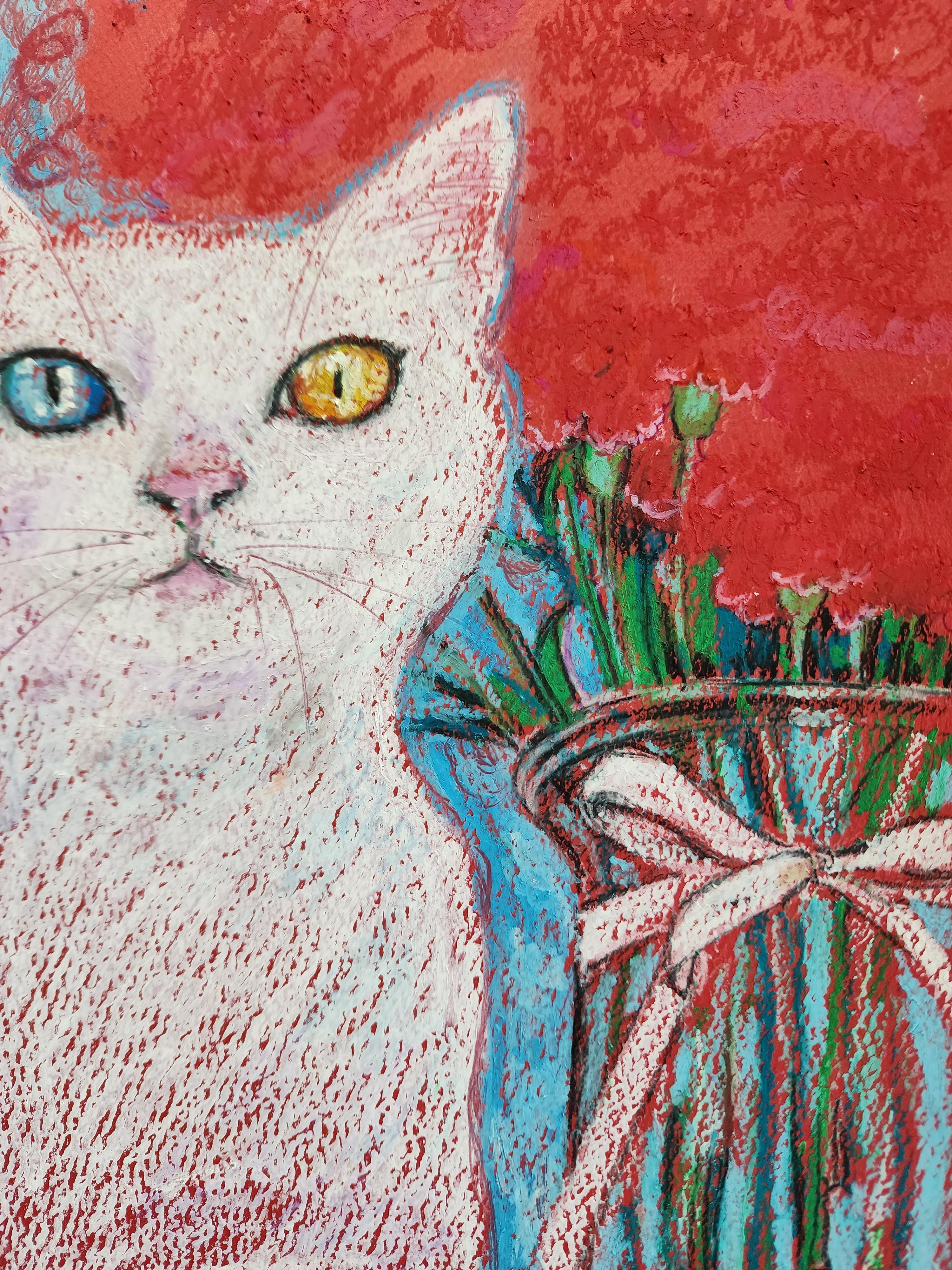 그림 그리기가 젤 현실적이어서 말이야.. 그림 재료는 크레파스를 선택하였어. 어느 날 우연히 크레파스로 그린 그림이 괜찮은듯해서 여러 장 그려 보니 점점 마음에 들더라고.. 요즘 눈도 잘 안 보이는데 크레파스의 두께감이 섬세한 표현을 안 해도 될 만큼 충분히 커버해주었고, 진한 색감이 부드럽고 화사한 색채를 만들어 그림을 경계선 부족하게 두리둥실 따뜻하게 그려낼 수 있었어.. 그리고 그림 재료도 단순해서 색지와 크레파스만 있으면 어디든지 가지고 다니며 편하고 쉽게 그림을 그릴 수 있어.. 여기저기 돌아다니며 아무 곳에서 든 편하게 그림을 그릴 수가 있다는 것이 가장 마음에 들더라고~ 크레파스와 색연필과 색지는 나의 탁월한 선택이란 생각이야~ 이제 시작이야! 고양이 강아지.. 그 외 반려동물을 그리기~