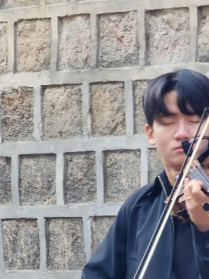 돌담길 곳곳에서 젊은이들이 거리 공연을 하더라 ~ 많은 사람이 모여있길래 씩씩한 엄마는 굳이 굳이 인파를 헤치고 들여다보았지... 카드마술로 분명 빈 카드를 놓았었는데... 없었던 동전이 생기더라고~ 엄마도 아이들도 눈 크게 뜨고 지켜봤는데 어디서 그 동전이 솟아난 걸까? 신기했어~~ 또 걷다 보니, 바이올린 소리가 얼마나 크고 아름다운지 가던 사람 다 잡아놓고 바라보게 만드는 그 청년 또한, 그림처럼, 얼마나 아름다웠는지 몰라~ 지금은 워싱톤 국립미술관에 있는 희망과 새 출발을 상징한다는 <파란 닭> 이 2013년에 영국 런던의 트라팔가 광장에 있었거든.. 그 <파란 닭 > 앞에서의 공연 모습이 생각났어... 거리 마술사가 꼬마를 불러서 춤을 추라고 시키면서 싸이의 강남스타일을 틀어주었는데~ 엄만 갑자기 대한민국!!! 하는 애국심이 불타올랐지... 오늘 덕수궁길은 또다시 그때의 환희와 애국심을 상기시켜주었어~ 가슴 벅차도록 아름다운 날이야. 엄마는 아주 만족한 하루를 보내고 왔단다.