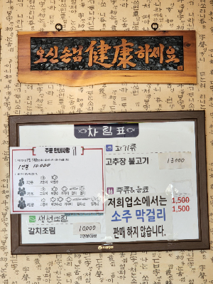 생선구이가 너무 유명한 집이니 생선구이 2인분을 시켰어. 밑반찬은 김치에 꼬막, 게장, 멸치, 생미역, 젓갈... 다 바닷가 음식이잖아. 거기다가 미역국까지 주더라~ 냉큼 한 젓가락씩 맛을 보았지. 대한민국 내륙 한가운데서 먹는 밑반찬은 대한민국 어느 항구에서 먹는 것보다도 바다향이 풍부하고 더 맛있고 푸짐했어. 생선구이가 나오기도 전에, 벌써 밑반찬에서 아주 흡족했지. 잘 구워진 임연수어와 고등어 한 마리, 금방 지은 뜨거운 돌솥밥이 곧 나왔어. 말해 뭐 해~ 생선도 찰지고, 고소한 흰밥도 너무 맛있었지. 자기가 상상하는 그대로야. 게다가 가격도 1인분 1만 원이야.