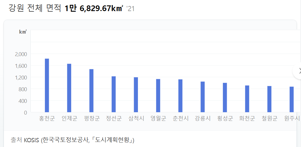 3. 강원도에서 제일 큰 지방자치단체는 홍천군, 인구 6만 8천