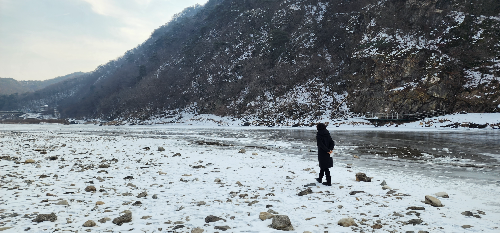 태백산맥 골짜기 골짜기, 오대산에서 시작된 작은 냇물은 홍천군 서석면에서 졸졸거리며 강의 모양을 만들어 홍천을 휘돌아 흐르게 되지. 홍천강은 아름다운 모곡리 강변을 지나고 경기도 가평에서 북한강을 만나게 돼. 북한강 줄기가 되어 열심히 따라가던 홍천강은 팔당에서 남한강물을 만나게 되면서, 서울로 들어가는 한강이 되는 거지. 우당탕퉁탕 부지런히 따라가고 있는 홍천강이이 오늘은 꽁꽁 얼어있었어. 두꺼운 얼음밑으로 끊임없이 물이 흐르고~ 홍천강 꽁꽁 축제가 1.13~1.24.인데 오늘은 비가 많이 와서 문을 못 열었다는 뉴스를 들었어. 날씨가 추워져서 슈퍼인삼송어 한 마리 잡으러 가면 좋겠다.