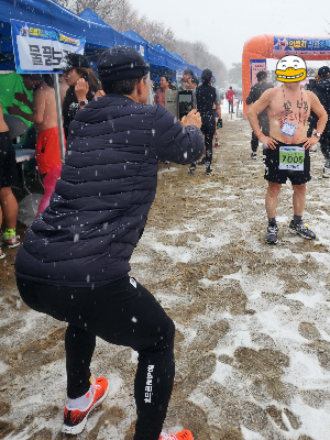 에코브릿지아래에 차를 대고 눈 속을 빠르게 걸었어. 난 요즘 뛰는 것을 잘 못해ㅠㅠ. 사람들이 우르르 달려 내려오는데, 다들 웃는 모습이야. 눈 맞고... 비 맞고 달리기 하는 것은 애들만 좋아라~ 하는 줄 알았지 뭐야. 눈 속을 달리던 사람들이 카메라를 들고 있는 나를 보고 웃어주었어. 전국각지에서 모인 유쾌한 사람들이라 매너하나는 끝내줘~ 이 사진 귀한 사진일 텐데... (오늘 알몸님들이 보면 좋겠다고 올렸는데 혹, 원본 필요하시다면 댓글 주셔요~ ^^) 여기서도 사람들이 빠르게 사라지고 있는 거야.. 어떻게 뛰는 사람이 차 타고 따라다니는 나보다 빠른지 몰라.