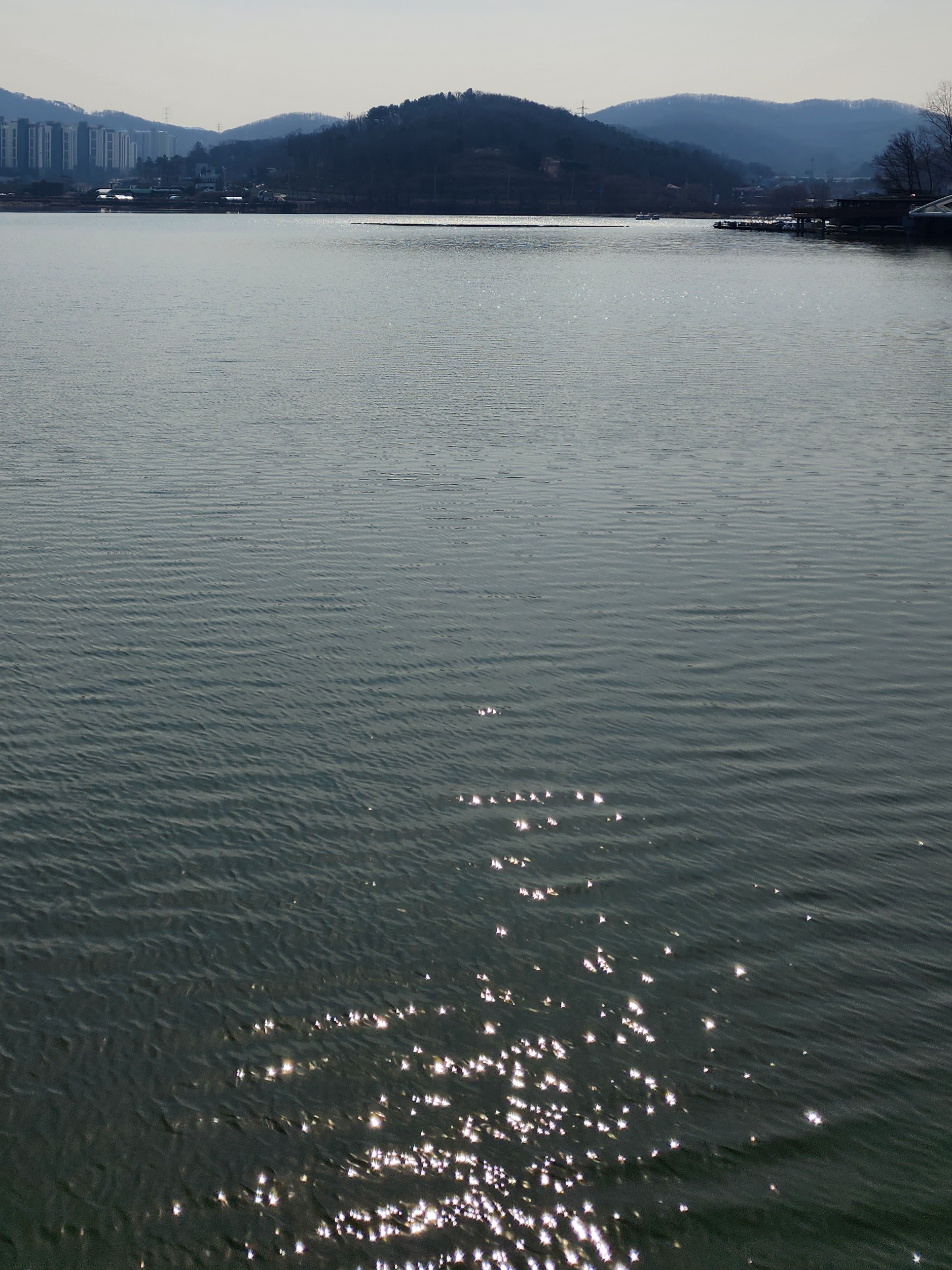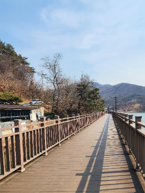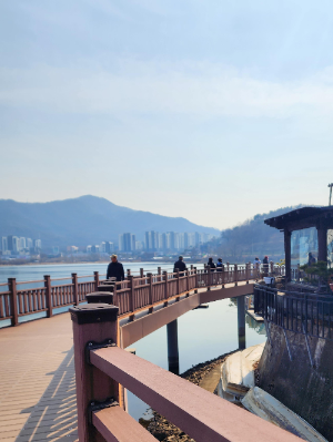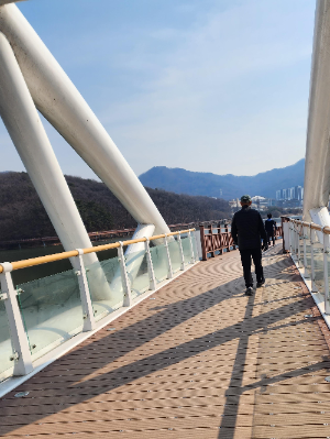 조잘~ 조잘~ 수다 떨며 밥을 다아~ 먹고 나서는... 의왕 백운호수 둘레길(생태탐방로)을 걷기로 했어~둘레길 3km는 현재, 2023. 6.20. 완공예정으로 백운호수 생태탐방로 연결과 공원조성공사 중이야. 나무 데크 길도 2/3 정도 연결되어 있어서 이쪽으로 갔다 오고 저쪽으로 갔다 오고 했더니 걸음수가 10,000보가 되더라고~ 의왕백운호수는 공기도 좋고 연인들이 오리배를 타며 데이트를 즐기는 코스래. 내 친구도 남편과 처음 만나는 날, 백운호수에서 오리배를 탔다고 하더라구~ 오늘은 날씨가 따뜻해서인지 걷는 사람도 꽤 많았어, 둘레길이 완성되면 다시 걷고 싶어. 호수 위에 만든 데크라 물속이 훤히 들여다 보이고 주변에는 의왕시의 도시건물과 나무숲, 예쁜 커피집도 많았어. 롯데 아웃렛도 큼직하게 보이고 말이야. 언니들은 밥 먹자고 하면, 꼭 운동화를 신고 한 시간씩은 걸어줄 준비를 해야만 해. 언니들의 데이트는 만보 걷기~ ㅎㅎㅎ