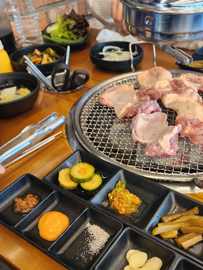 우리 집도 1일 1 닭이지만... 젊은 청춘이 함께 사는 우리나라 많은 가정은 다 비슷할 것 같아. 매일 먹는 닭고기지만 오늘 통나무숯불 닭고기는... 양념을 심심하게 했고, 고기도 신선하고 부드럽고 맛있어서 멀리서 찾아온 친구에게 대접하기에는 딱 좋은 음식이었어~ 반찬도 무한 리필이라 마음껏 먹을 수가 있었어. 그래서 밑반찬을 몇 번이나 가져다 먹었지 뭐야. 내 눈치를 살피는 친구에게 "너무 맛있고 아주 만족해!!!"하고 말했어. 춘천 친구들이 닭갈비!!! 하면 통나무집을 1번으로 손꼽는 이유 충분해. 충분해.