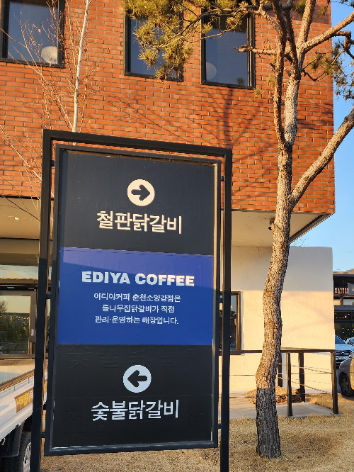 통나무집 닭갈비는 워낙에 유명해. 춘천사람들에게 닭갈비 먹으러 가자~ 하면 1번으로 말하는 닭갈비집이 통나무집이지... 시설 깨끗하고 세련된 실내에~ 맛도 좋고~ 주차장도 넓고~ 근처에 감자빵집 카페와 소양댐도 있으니 볼 것도 많으니 집에 손님이 오시면 이곳으로 모시고 오게 된다는 거지. 통나무집 닭갈비는 숯불 닭갈비집, 이디야커피, 철판닭갈비집 3개의 건물로 이루어져 있어.