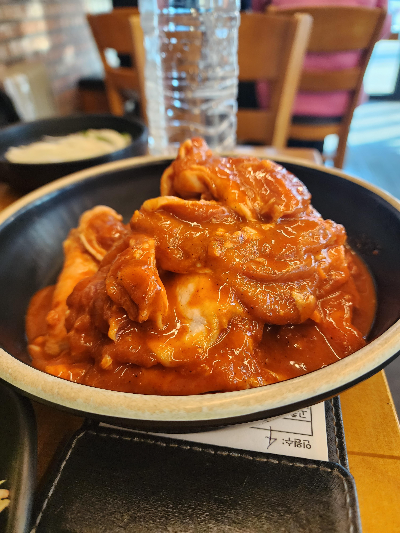 우리 집도 1일 1 닭이지만... 젊은 청춘이 함께 사는 우리나라 많은 가정은 다 비슷할 것 같아. 매일 먹는 닭고기지만 오늘 통나무숯불 닭고기는... 양념을 심심하게 했고, 고기도 신선하고 부드럽고 맛있어서 멀리서 찾아온 친구에게 대접하기에는 딱 좋은 음식이었어~ 반찬도 무한 리필이라 마음껏 먹을 수가 있었어. 그래서 밑반찬을 몇 번이나 가져다 먹었지 뭐야. 내 눈치를 살피는 친구에게 "너무 맛있고 아주 만족해!!!"하고 말했어. 춘천 친구들이 닭갈비!!! 하면 통나무집을 1번으로 손꼽는 이유 충분해. 충분해.