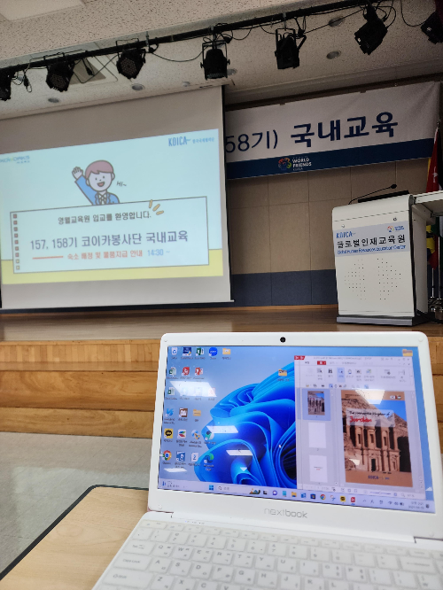 이제, 3주간의 코이카봉사단 집합교육이 시작되었어. 157기, 158기의 수강인원은 100명이 넘었어. 코이카 강사들은 최고의 강의실력으로 아주 멋진 강의를 뽐냈지~ 강의는 아주 흡족했어. 아마도 비싼 강사일 거야! 강사들은 거의 코이카 해외봉사를 다녀온 선배들이더라고~ 여기서는 코이카 홈페이지에 자주 들어가서 공지사항도 보고, 자료도 다운로드해 둬야 해. 매 강의마다 설문도 해야하고... 퇴소하고 보니 그 많던 자료들을 다 삭제하였더라구... 둘째 주에는 각종 규종 및 개발협력과정 시험 보았고 3주 차에는 현지어 말하기 시험을 보았어.
