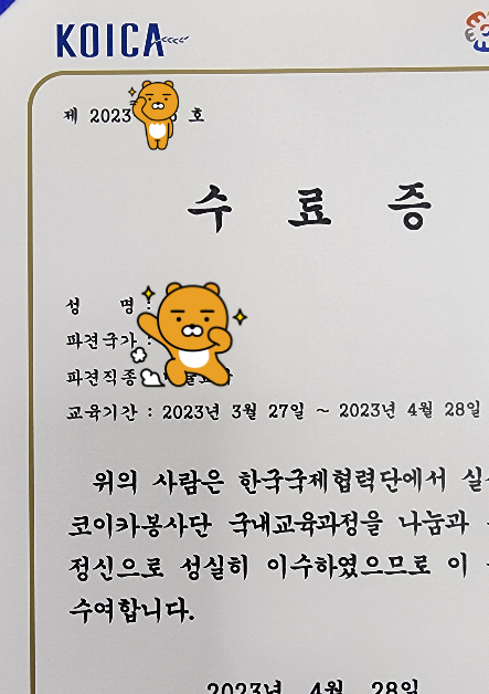 코이카 해외봉사 국내연수 33일. 기록 9.